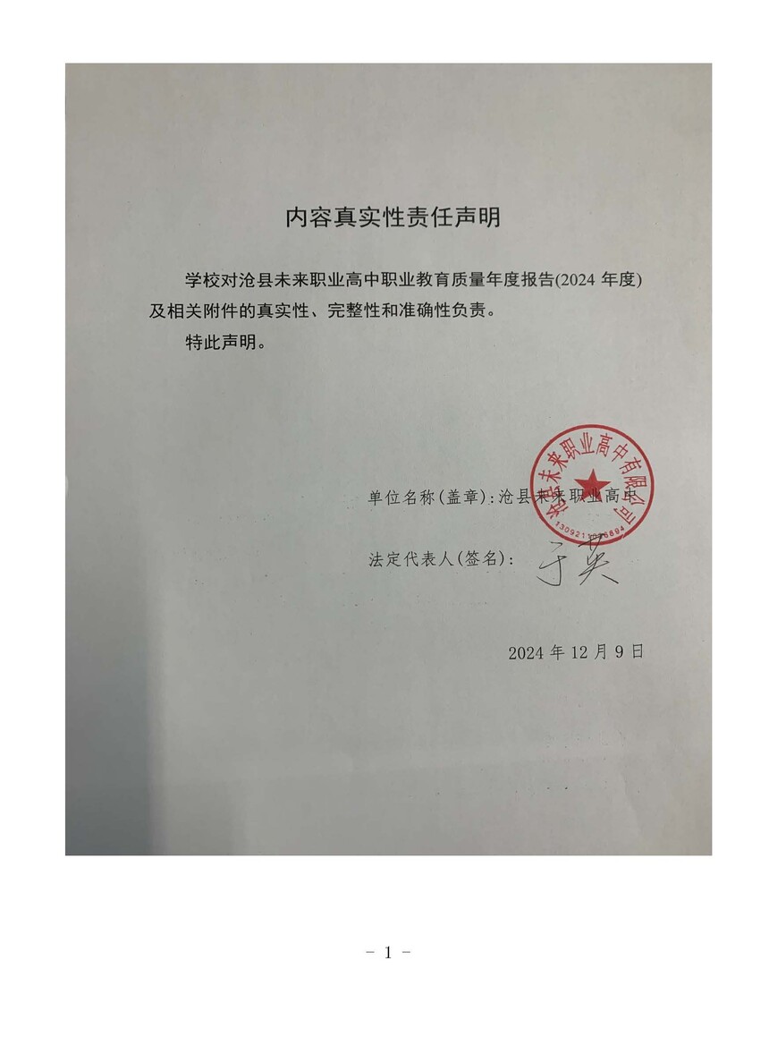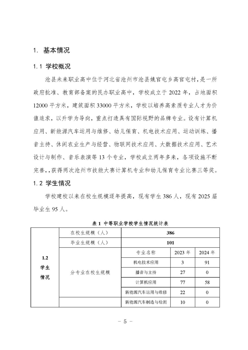 沧县未来职业高中2024年质量年度报告